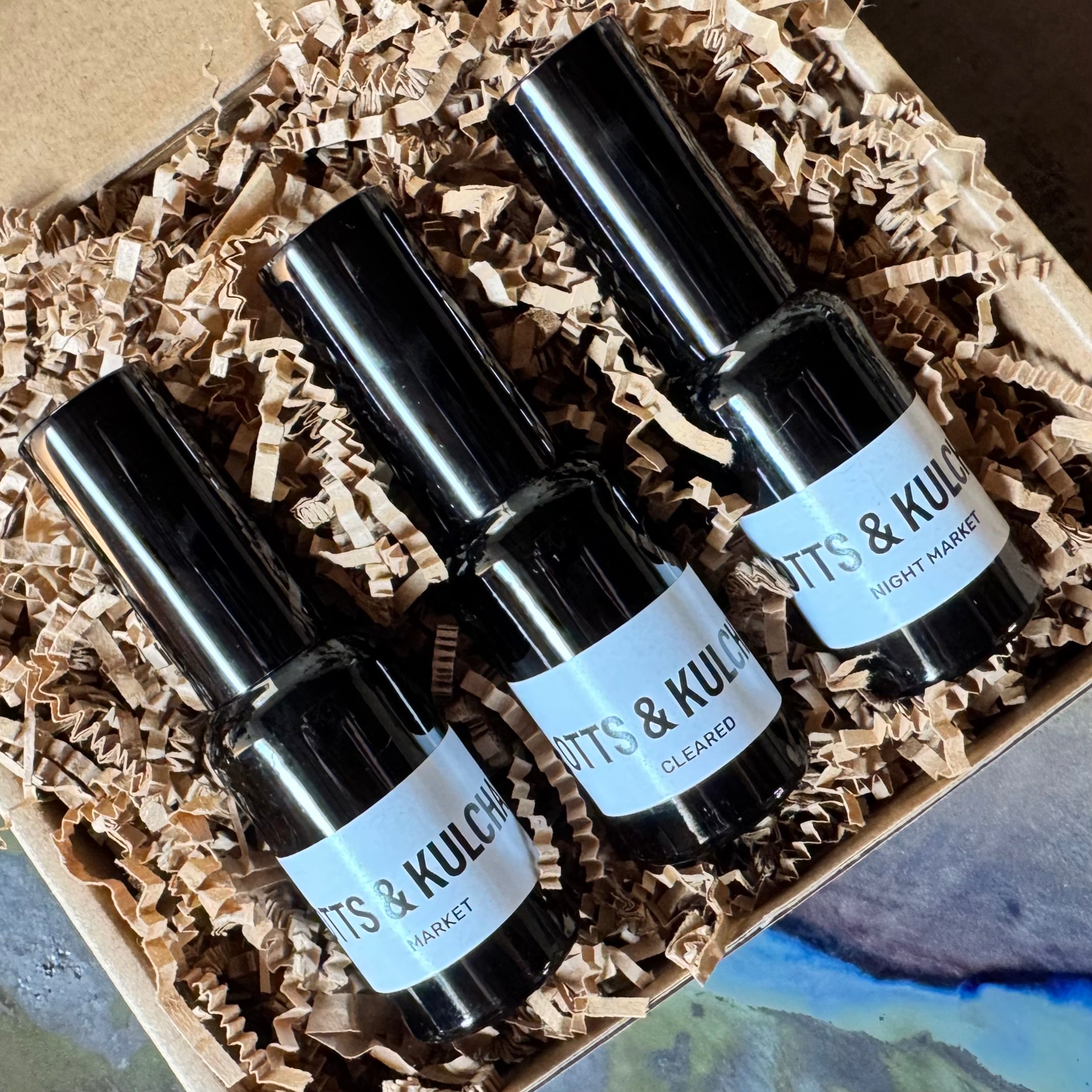 A giftable trio of 30 ml room sprays - Market, Cleared, and Night Market - designed to help you find your perfect Otts & Kulcha atmosphere.