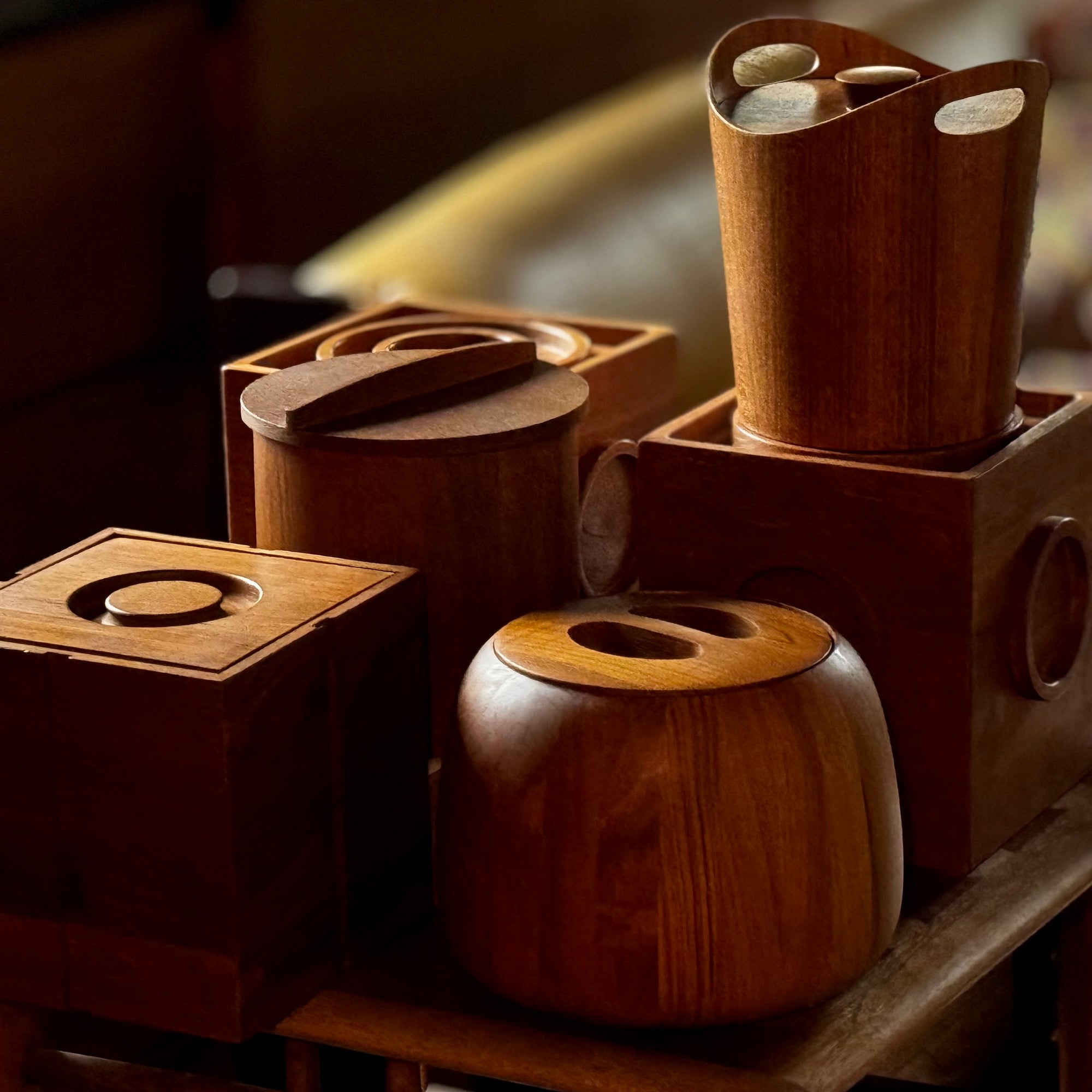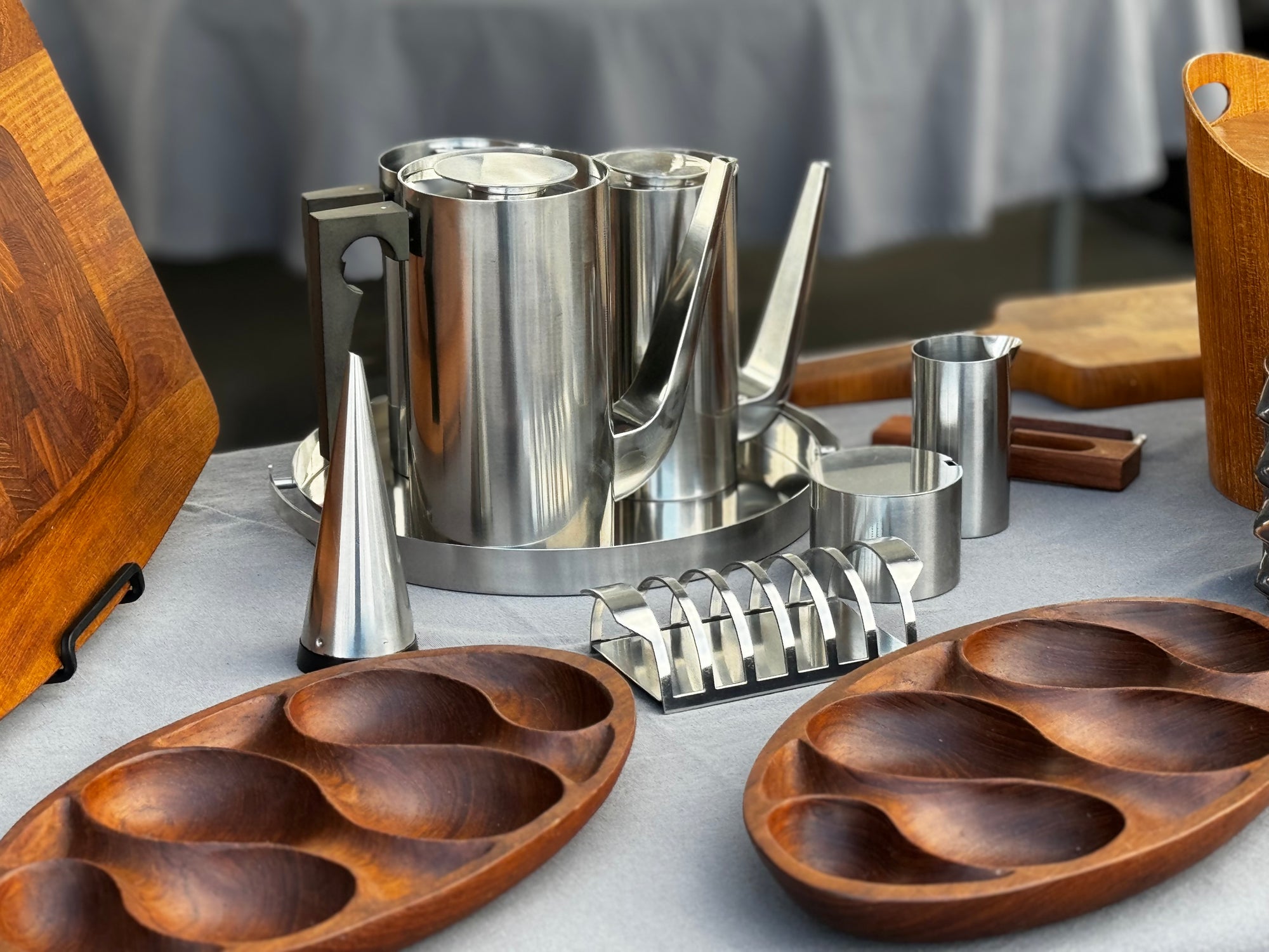Specializing in iconic teak, stainless steel, glass, and ceramics from the 1950s–70s, the collection reflects a refined eye for proportion, material, and craftsmanship.